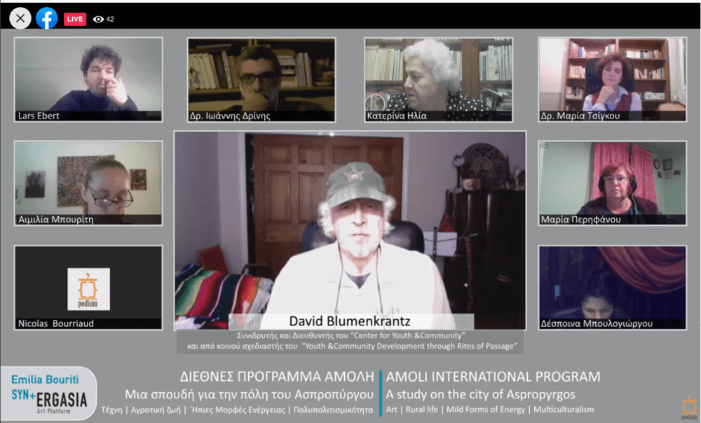 David Blumenkrantz, Συνιδρυτής και Διευθυντής του “Center for Youth &Community”, και από κοινού σχεδιαστής του “Youth &Community Development through Rites of Passage”. Θέμα: Η Πρόκληση της Τέχνης σε Επιστήμη & Προγράμματα. Ηνωμένες Πολιτείες.