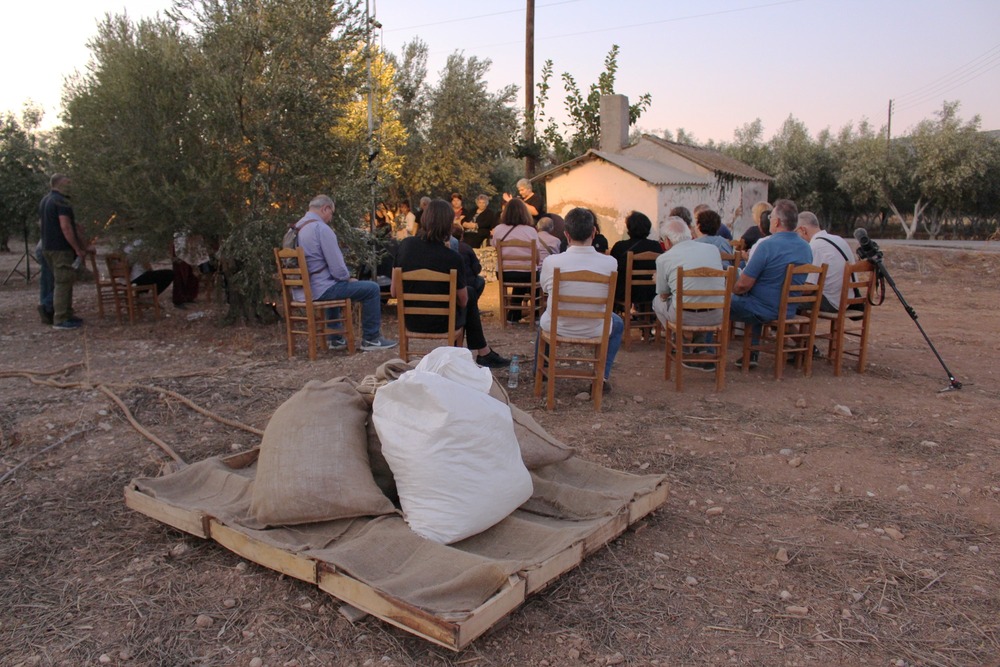 Πρόκειται για μία καλλιτεχνική δράση όπου μέσα από τα στοιχεία της performance, της εικαστικής εγκατάστασης, των προβολών, της αφήγησης, της δυναμικής του τοπίου και τις ψυχικές και πολυπολιτισμικές καταθέσεις κοινωνικών ομάδων, όπως των Αρβανιτών αγροτών και των Ποντίων της συνοικίας της Γκορυτσάς, οι συμμετέχοντες βιωματικά επεξεργάζονται τη σχέση του σώματος με την καλλιεργημένη τροφή, το χώμα, τους σπόρους, το τοπίο, τη μνήμη και την ιστορία των τόπων, καθώς χτίζεται ένας ουσιαστικός κώδικας επικοινωνίας μεταξύ τους.