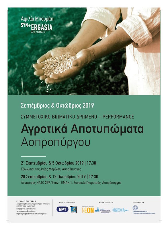Η Αιμιλία Μπουρίτη, εικαστικός, performance artist και εμπνευστής της ιδέας του διεθνούς έργου «Αμολή» παρουσιάζει το πρώτο μέρος του προγράμματος με τίτλο Αγροτικά Αποτυπώματα Ασπροπύργου, Ένα Συλλογικό Έργο στην Αγροτική, Μεταβιομηχανική, Πολυπολιτισμική Κοινότητα του Ασπροπύργου.