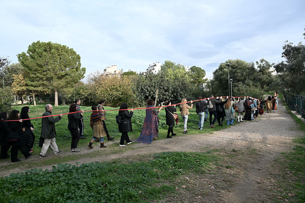 The workshop and performance focus on the influence of the landscape on humans. According to Plato’s beliefs, the natural environment affects the human soul, thought, and political organization. Questions arise such as: How do asymmetry, curvature, and endless connections in a chaotic natural complex affect our lives? Whom, how many, and how much does imposing symmetrical structures on nature serve? How can human linear progress justify the cutting down of hundreds of trees in an era where the climate crisis and global warming threaten citizens with unusual and prolonged heatwaves?
