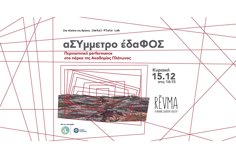 The performance aSYMmetric grouND is a multisensory walking performance created by the participants of the meta-Plato Lab workshop, with themes: The body as part of the natural landscape / Curvature in relation to linear progression. The performance is a work in progress and part of the meta-Plato Lab initiative, a research on the sustainability of the Park of Akadimia Platonos.