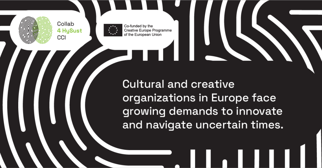 Collab 4 HySust CCI, an innovation incubation project supported by the European Union, invites creative and cultural organizations across Europe to join a remarkable journey of development, innovation, and collaboration. Our mission is to promote the sustainable growth of Europe’s cultural and creative sectors, empowering local communities and driving transformative change in the industry.