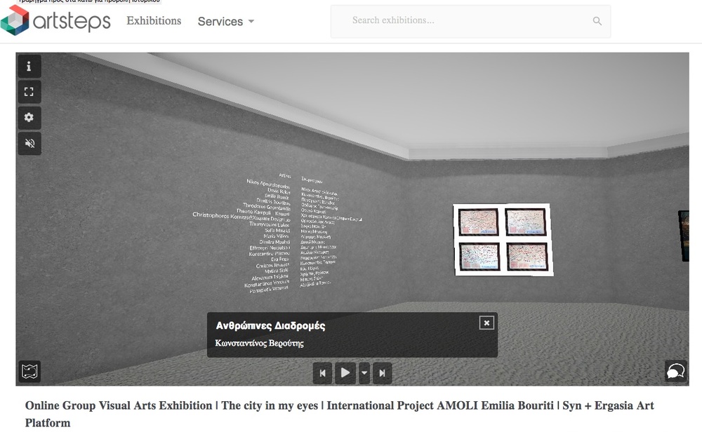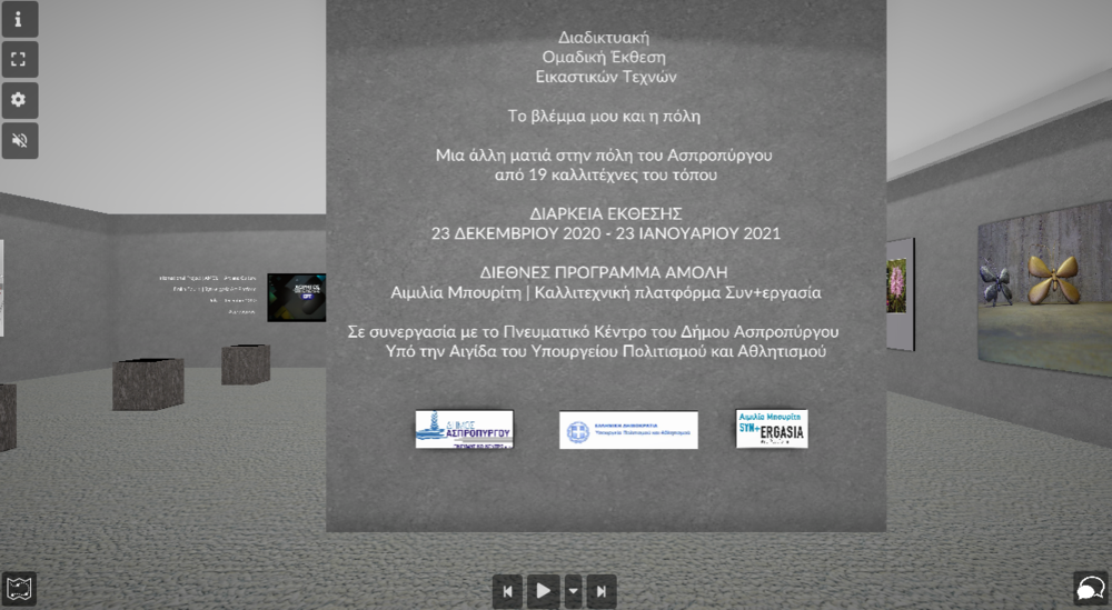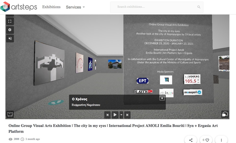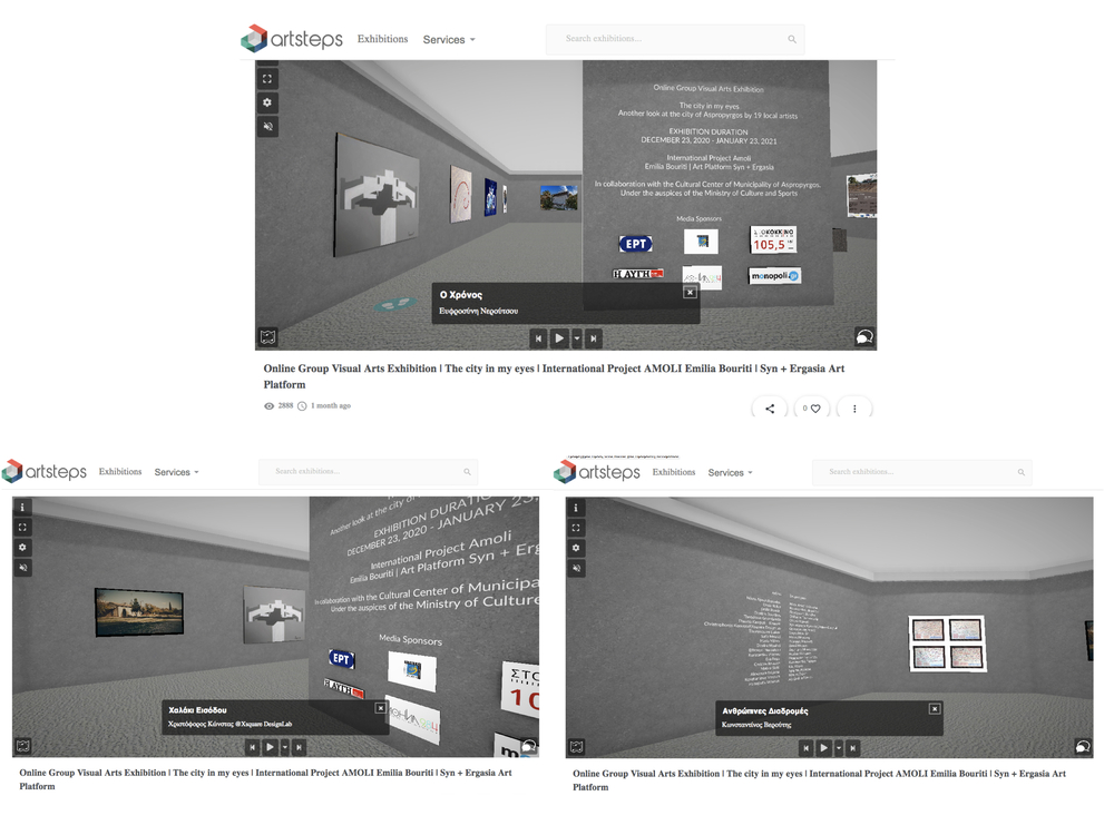 The exhibition is held in collaboration with the Cultural Center of the Municipality of Aspropyrgos and is under the auspices of the Ministry of Culture and Sports. It will remain open to the public from December 23, 2020 (at 20:00) until January 23, 2021.