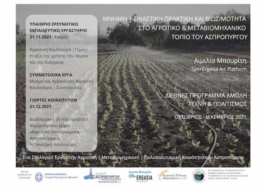 Στις 21 Νοεμβρίου 2021 θα πραγματοποιηθεί η έναρξη του υπαίθριου, ερευνητικού και εκπαιδευτικού εργαστηρίου με θέμα την αξία της χρήσης του νερού και της ενέργειας από την Αιμιλία Μπουρίτη σε συνεργασία με το Εργαστήριο Ήπιων Μορφών Ενέργειας και Προστασίας Περιβάλλοντος του Τμήματος Μηχανολόγων Μηχανικών του Πανεπιστημίου Δυτικής Αττικής (ΗΜΕ & ΠΡΟΠΕ – ΠΑΔΑ).