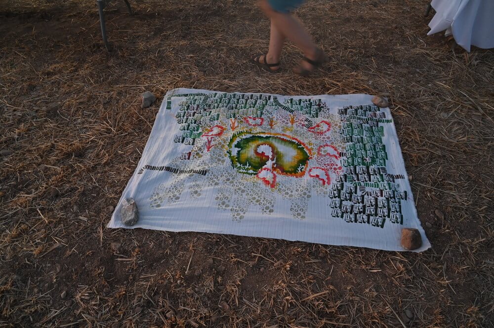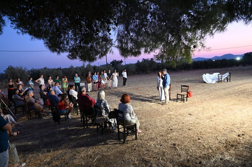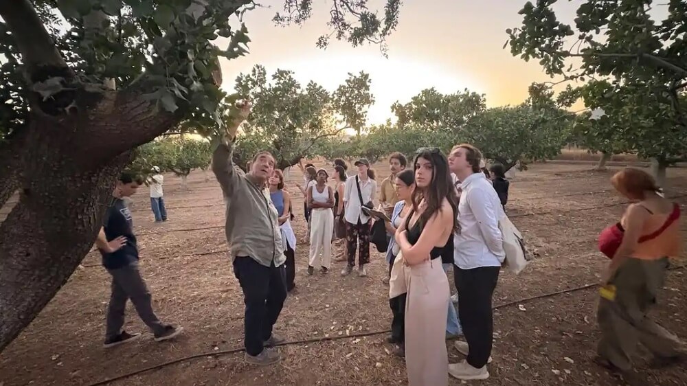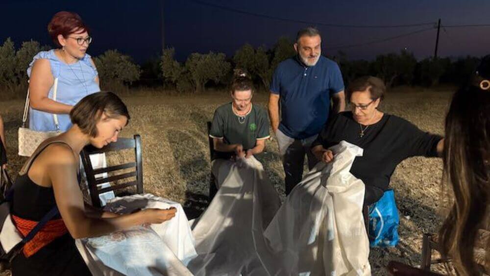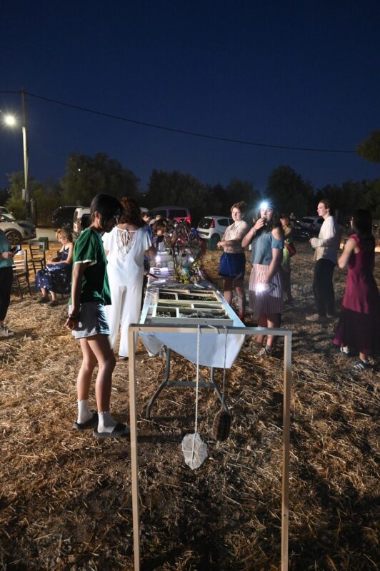 Οι καλλιτέχνες συνεχίζουν με ένα τριήμερο βιωματικό εργαστήριο στα αγροκτήματα του Ασπροπύργου σε συνεργασία με τους γεωργούς όπως τον κ. Δημήτρη Χατζή και την κα. Αντιγόνη Λιόση και καλλιεργητές δέντρων όπως τον κ. Θανάση Σερέπα.